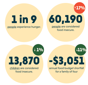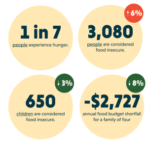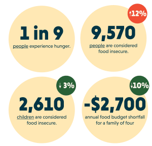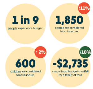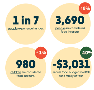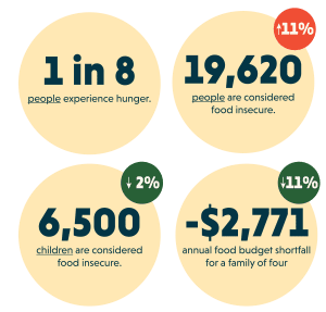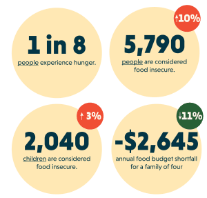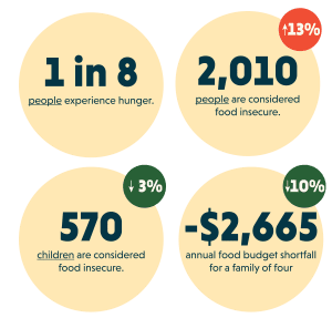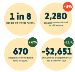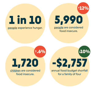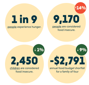 Click on a county to explore unique hunger statistics. Then, download the county-specific fact sheet to which contains hunger data and how we’re working to address it.