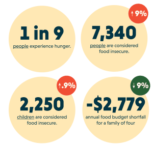 Hunger can affect people from all walks of life. But hunger doesn’t affect everyone the same—some groups like children, communities of color, rural communities, women, and people with disabilities face hunger at a much higher rate. In our 16-county service area: